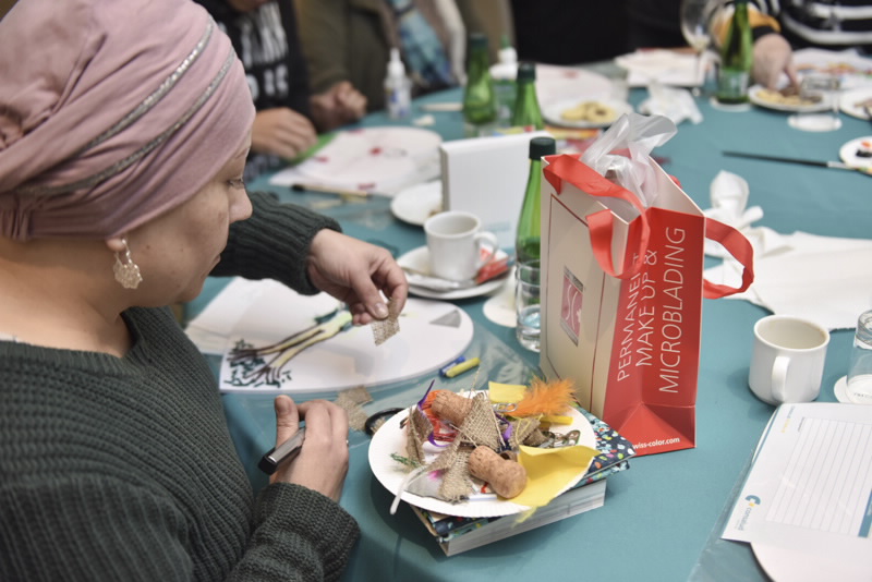La actividad los llevó a recorrer las distintas etapas del proceso de recuperación que han vivido y estuvo dirigida por la arteterapeuta, Claudia Yáñez, y la oncopsicóloga, Constanza Zúñiga, quienes guiaron la creación artística bajo el concepto “Resignifica el sentido de tu enfermedad”, con el objetivo de que los pacientes dieran cuenta de cómo una dificultad médica compleja puede ser una oportunidad para darle un nuevo sentido a la vida.