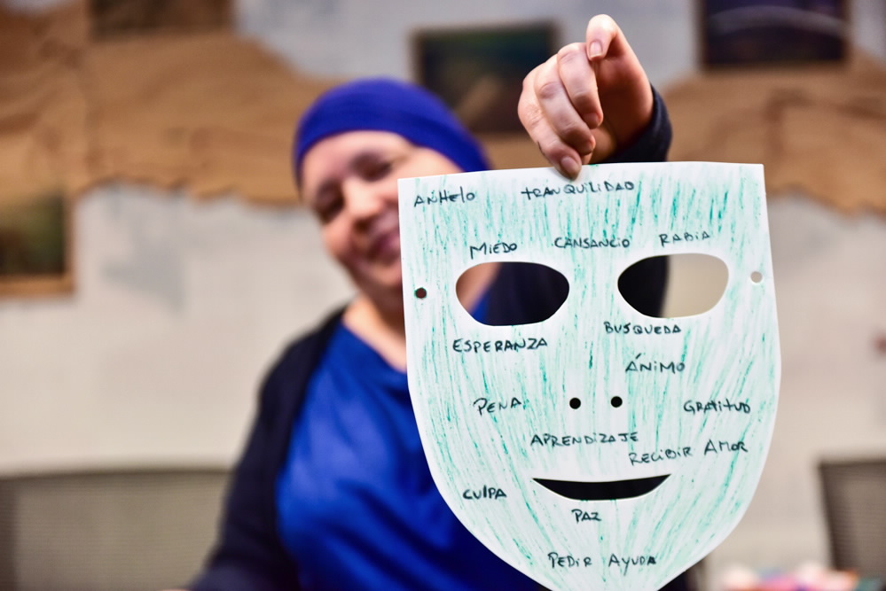 “Cuando nosotros entendemos que el arteterapia se abre como un lenguaje para expresar, para comunicar, declarar y abrir un espacio más íntimo, nos damos cuenta que también hay una función de contención, de escuchar y de dar testimonio a quienes no han vivido la enfermedad”, explica Claudia.